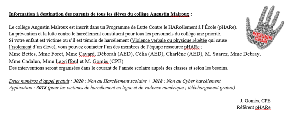 Lutte contre le harcèlement : projet pHARe